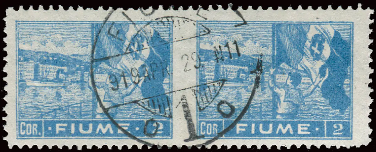 Fluss - Allegorien 2 C. ungezahntes Paar in der Mitte GEBRAUCHT - Fluss - Allegorien 2 C. Kobalt Nr. B45g horizontales Paar ungezahnt in der Mitte - Schön und ungewöhnlich - Kat. euro 150 Cod. 926/15