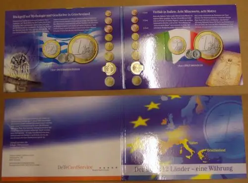 Folder Telekom 12 Länder - eine Währung, €- Münzen + TK (Griechenland, Italien)