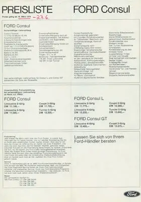 Ford Consul Preisliste 3.1974