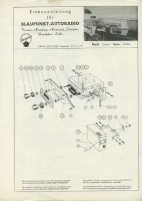 Ford Consul Zephyr Zodiac / Blaupunkt Autoradio Einbauanleitung 6.1956