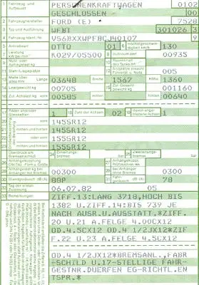 Ford Fiesta (Typ WFBT) Original Fahrzeugbrief 1982