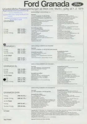 Ford Granada Preisliste 2.1979