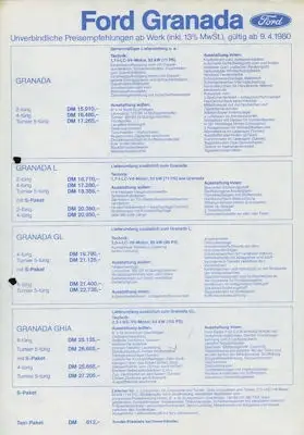 Ford Granada Preisliste 4.1980