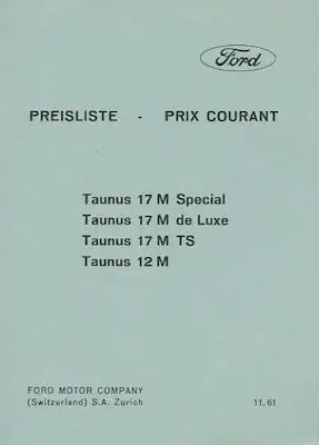 Ford Preisliste der Schweiz 11.1961