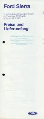 Ford Sierra Preisliste 3.1983