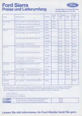 Ford Sierra Preisliste 8.1989
