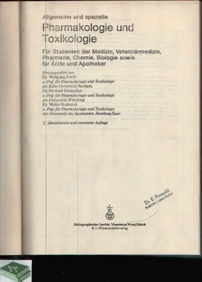 Allgemeine und spezielle Pharmakologie; Toxikologie; Für Studenten der Medizin; Veterinärmedizin; Pharmazie; Chemie; Biologie; Ärzte;Apotheker; Wolfgang Forth; Fachliteratur; Gift; Arzneien; Medikamente