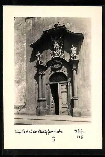 Foto-AK Adalbert Defner: Wels, Portal der Stadtpfarrkirche