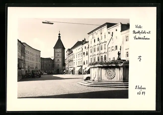 Foto-AK Adalbert Defner: Wels, Stadtplatz mit Ledererturm