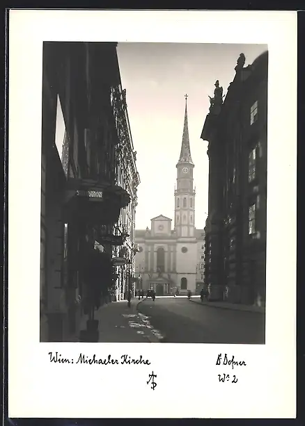 Foto-AK Adalbert Defner: Wien, Michaeler-Kirche mit Strassenpartie
