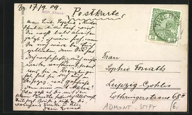 alte Ansichtskarte, gelaufen 1909, guter Zustand