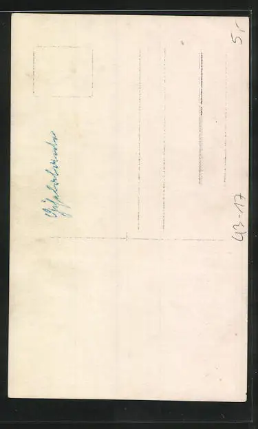 Personenbezogene Daten auf der Rückseite der Karte wurden durch blauen Textmarker unkenntlich gemacht. Die blauen Stellen sind auf die Vorderseite durchgeweicht und wirken sich negativ auf das Postkartenfoto aus
