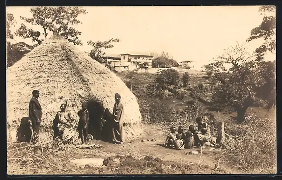 Foto-AK Afrikanische Familien vor ihrer Hütte