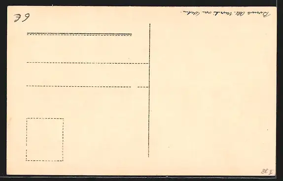 Personenbezogene Daten auf der Rückseite der Karte wurden durch blauen Textmarker unkenntlich gemacht. Die blauen Stellen sind auf die Vorderseite durchgeweicht und wirken sich negativ auf das Postkartenfoto aus