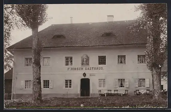 Foto-AK Aigen im Mühlkreis, F. Hirschs Gasthaus mit Garten