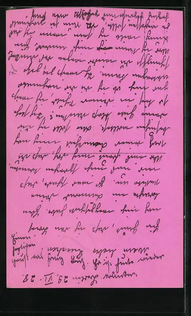 Personenbezogene Daten auf der Rückseite der Karte wurden durch blauen Textmarker unkenntlich gemacht. Die blauen Stellen sind auf die Vorderseite durchgeweicht und wirken sich negativ auf das Postkartenfoto aus