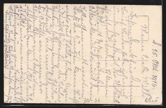 Personenbezogene Daten auf der Rückseite der Karte wurden durch blauen Textmarker unkenntlich gemacht. Die blauen Stellen sind auf die Vorderseite durchgeweicht und wirken sich negativ auf das Postkartenfoto aus