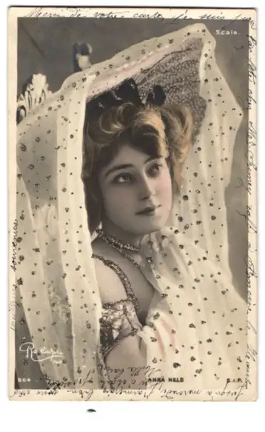 Foto-AK Atelier Reutlinger, Paris: Anna Held im Kleid mit Glitzerperlen