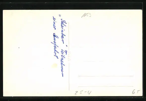 Personenbezogene Daten auf der Rückseite der Karte wurden durch blauen Textmarker unkenntlich gemacht. Die blauen Stellen sind auf die Vorderseite durchgeweicht und wirken sich negativ auf das Postkartenfoto aus