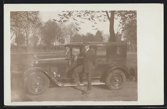 Foto-AK Auto Adler Standard 6, Chauffeur posiert vorm KFZ