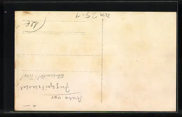 Personenbezogene Daten auf der Rückseite der Karte wurden durch blauen Textmarker unkenntlich gemacht. Die blauen Stellen sind auf die Vorderseite durchgeweicht und wirken sich negativ auf das Postkartenfoto aus