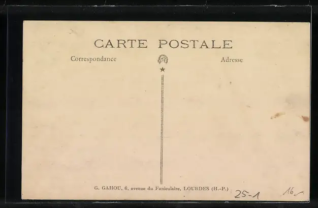 Personenbezogene Daten auf der Rückseite der Karte wurden durch blauen Textmarker unkenntlich gemacht. Die blauen Stellen sind auf die Vorderseite durchgeweicht und wirken sich negativ auf das Postkartenfoto aus