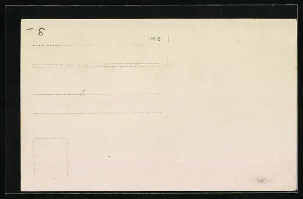 Personenbezogene Daten auf der Rückseite der Karte wurden durch blauen Textmarker unkenntlich gemacht. Die blauen Stellen sind auf die Vorderseite durchgeweicht und wirken sich negativ auf das Postkartenfoto aus