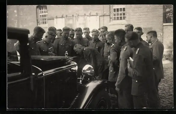 Foto-AK Auto mit Soldaten in Uniform an der Grenze