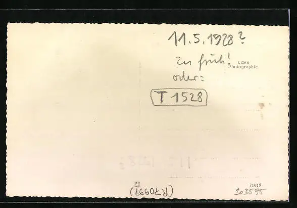 Personenbezogene Daten auf der Rückseite der Karte wurden durch blauen Textmarker unkenntlich gemacht. Die blauen Stellen sind auf die Vorderseite durchgeweicht und wirken sich negativ auf das Postkartenfoto aus