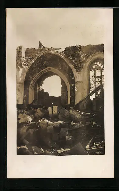 Foto-AK Beuvraignes, Teilansicht der zerstörten Kirche, Portal
