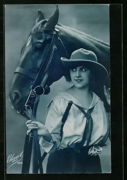 Foto-AK Bleuet Paris: Junge Frau mit ihrem Pferd