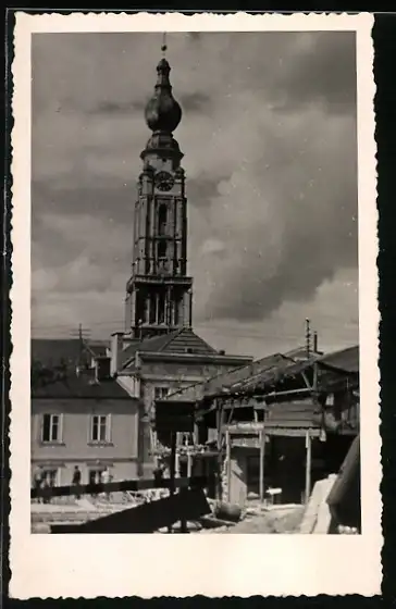 Foto-AK Braunau a. Inn, Baustelle mit Kirche