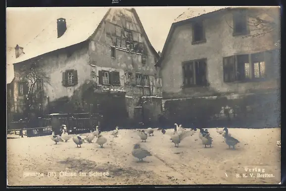 Foto-AK Bretten, Gänse im Schnee