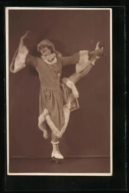 Foto-AK Dame im Kostüm auf Rollschuhen