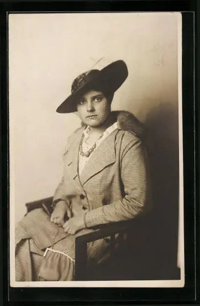 Foto-AK Dame in kariertem Kostüm mit Hut