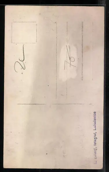 Personenbezogene Daten auf der Rückseite der Karte wurden durch blauen Textmarker unkenntlich gemacht. Die blauen Stellen sind auf die Vorderseite durchgeweicht und wirken sich negativ auf das Postkartenfoto aus
