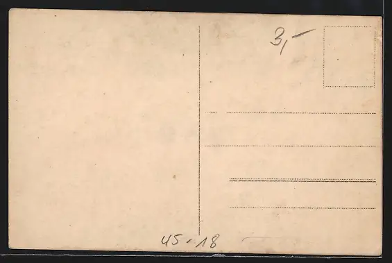 Personenbezogene Daten auf der Rückseite der Karte wurden durch blauen Textmarker unkenntlich gemacht. Die blauen Stellen sind auf die Vorderseite durchgeweicht und wirken sich negativ auf das Postkartenfoto aus