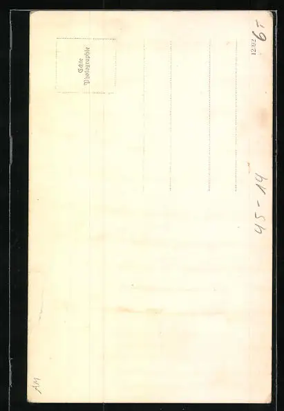Personenbezogene Daten auf der Rückseite der Karte wurden durch blauen Textmarker unkenntlich gemacht. Die blauen Stellen sind auf die Vorderseite durchgeweicht und wirken sich negativ auf das Postkartenfoto aus