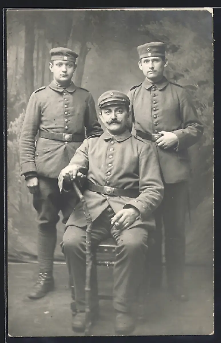 Foto-AK Drei Soldaten in Feldgrau Uniform