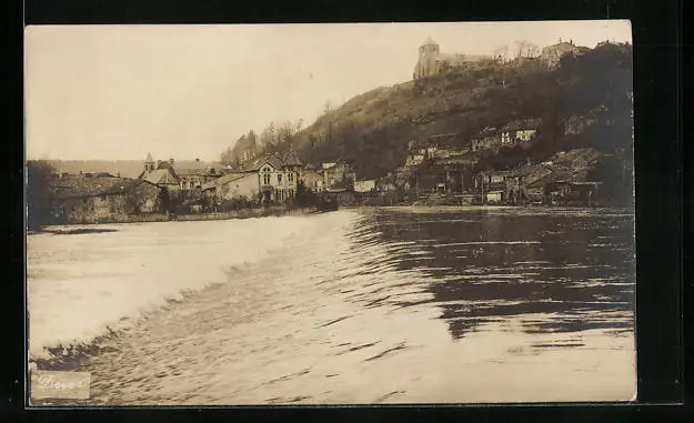 Foto-AK Dun-sur-Meuse, Flusspartie mit Wehr