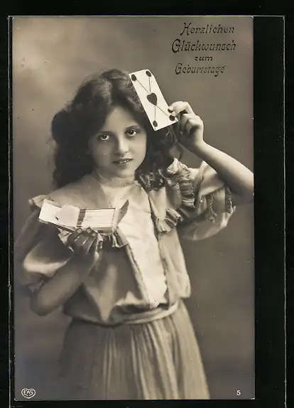 Foto-AK EAS Nr. 1285 /5: Junges Mädchen mit einem Brief und Zigaretten