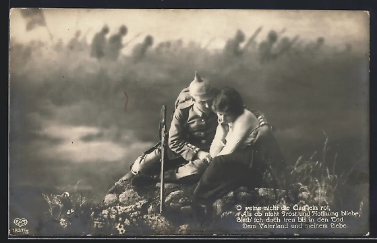 Foto-AK EAS Nr. 1837/5: Soldat mit Pickelhaube und Frau