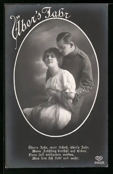 Foto-AK EAS Nr.3023 /4: Soldat in Uniform mit seiner Geliebten