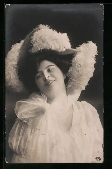 Foto-AK EAS: Schöne junge Frau mit Hut im Kleid