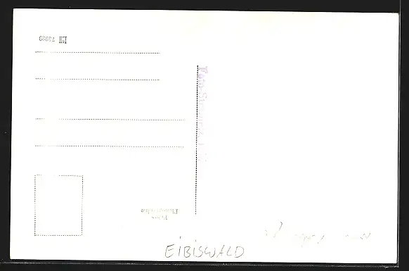 Personenbezogene Daten auf der Rückseite der Karte wurden durch blauen Textmarker unkenntlich gemacht. Die blauen Stellen sind auf die Vorderseite durchgeweicht und wirken sich negativ auf das Postkartenfoto aus