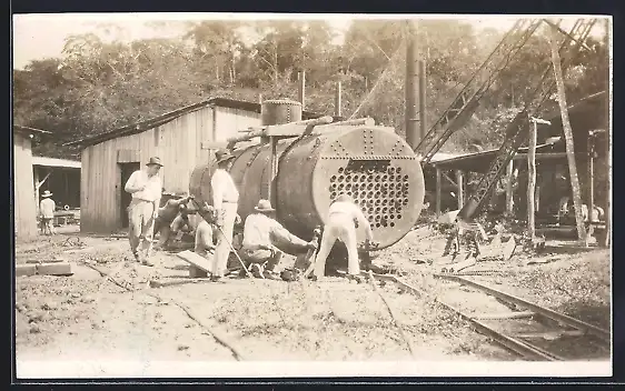 Foto-AK El Callao, Goldmine, Installierung eines Boilers