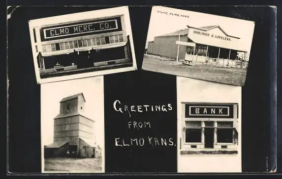Foto-AK Elmo, KS, Store Elmo Merc. Co., Bank