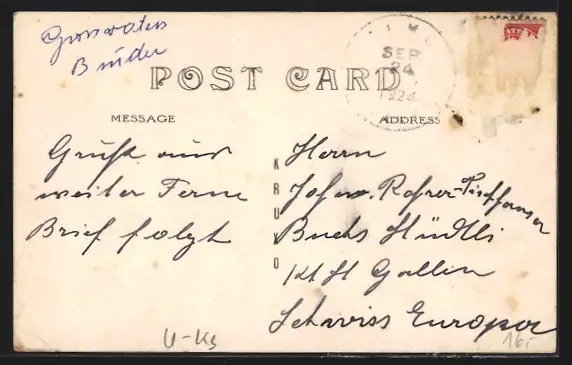 alte Ansichtskarte, gelaufen, Briefmarke entfernt, guter Zustand
