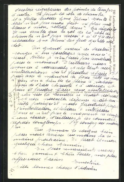 Personenbezogene Daten auf der Rückseite der Karte wurden durch blauen Textmarker unkenntlich gemacht. Die blauen Stellen sind auf die Vorderseite durchgeweicht und wirken sich negativ auf das Postkartenfoto aus