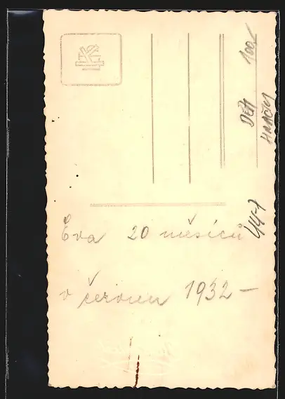 Personenbezogene Daten auf der Rückseite der Karte wurden durch blauen Textmarker unkenntlich gemacht. Die blauen Stellen sind auf die Vorderseite durchgeweicht und wirken sich negativ auf das Postkartenfoto aus
